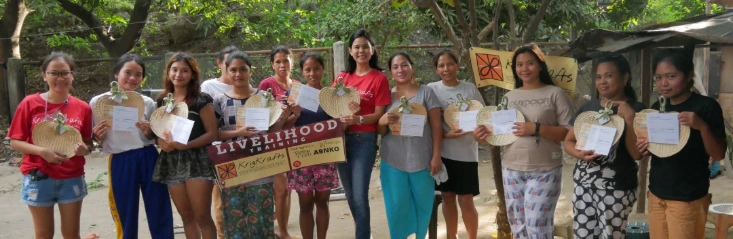Samahang Baybaying Ilog (SBI) - Santa Rosa, Laguna: Young mothers are empowered to work from the comfort of their homes, specifically focusing on adding intricate ribbon designs to Abaniko fans.